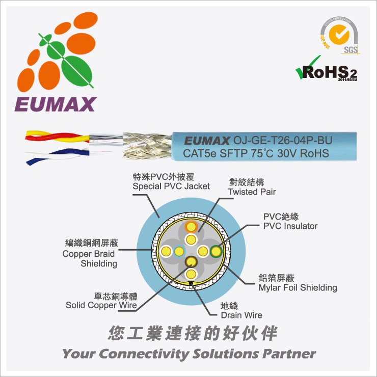 688-IE-T24x2P+T22x2C CAT5e乙太网电缆 PUR 24AWGx2P+22AWGx2C 100M/卷 欧巨乙太网电缆